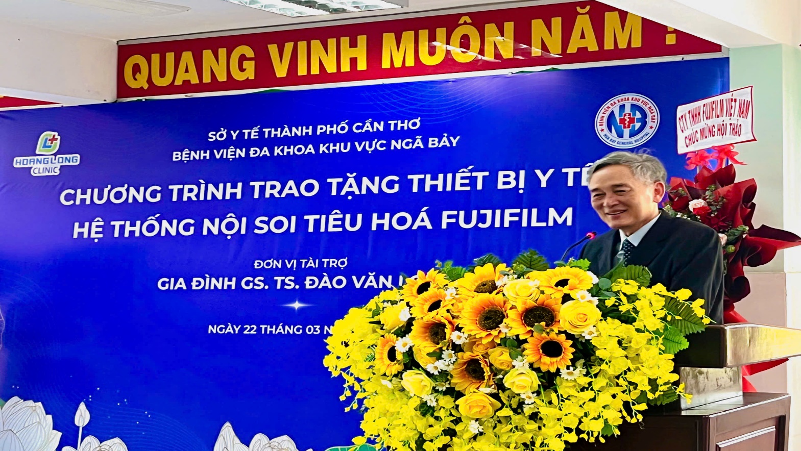 Chiều 22/3/2026, Bệnh viện Đa khoa khu vực Ngã Bảy tổ chức lễ tiếp nhận hệ thống nội soi tiêu hóa hiện đại do gia đình GS.TS Đào Văn Long trao tặng, đánh dấu bước tiến quan trọng trong nâng cao năng lực chuyên môn và chất lượng khám chữa bệnh.