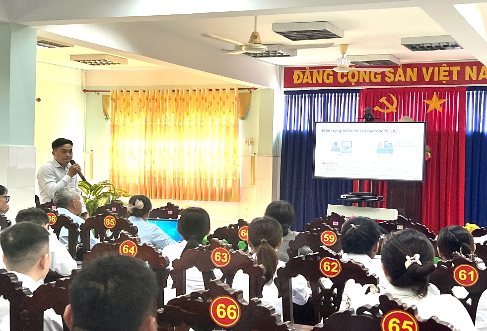 Cán bộ phụ trách VNPT đã giới thiệu nội dung hoàn chỉnh của hệ thống bệnh án điện tử, làm rõ vai trò, lợi ích cũng như quy trình thực hiện trong thực tế lâm sàng. Nội dung tập trung đánh giá việc thực hiện giai đoạn 1 thí điểm tại Khoa Nội Tim mạch – Lão học và Khoa Ngoại Tổng hợp sử dụng phần mềm và các yêu cầu kỹ thuật cần thiết, giúp đội ngũ y tế từng bước tiếp cận phương thức quản lý số, thay thế dần bệnh án giấy truyền thống.