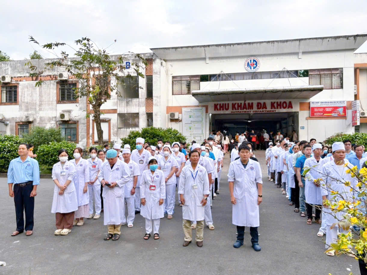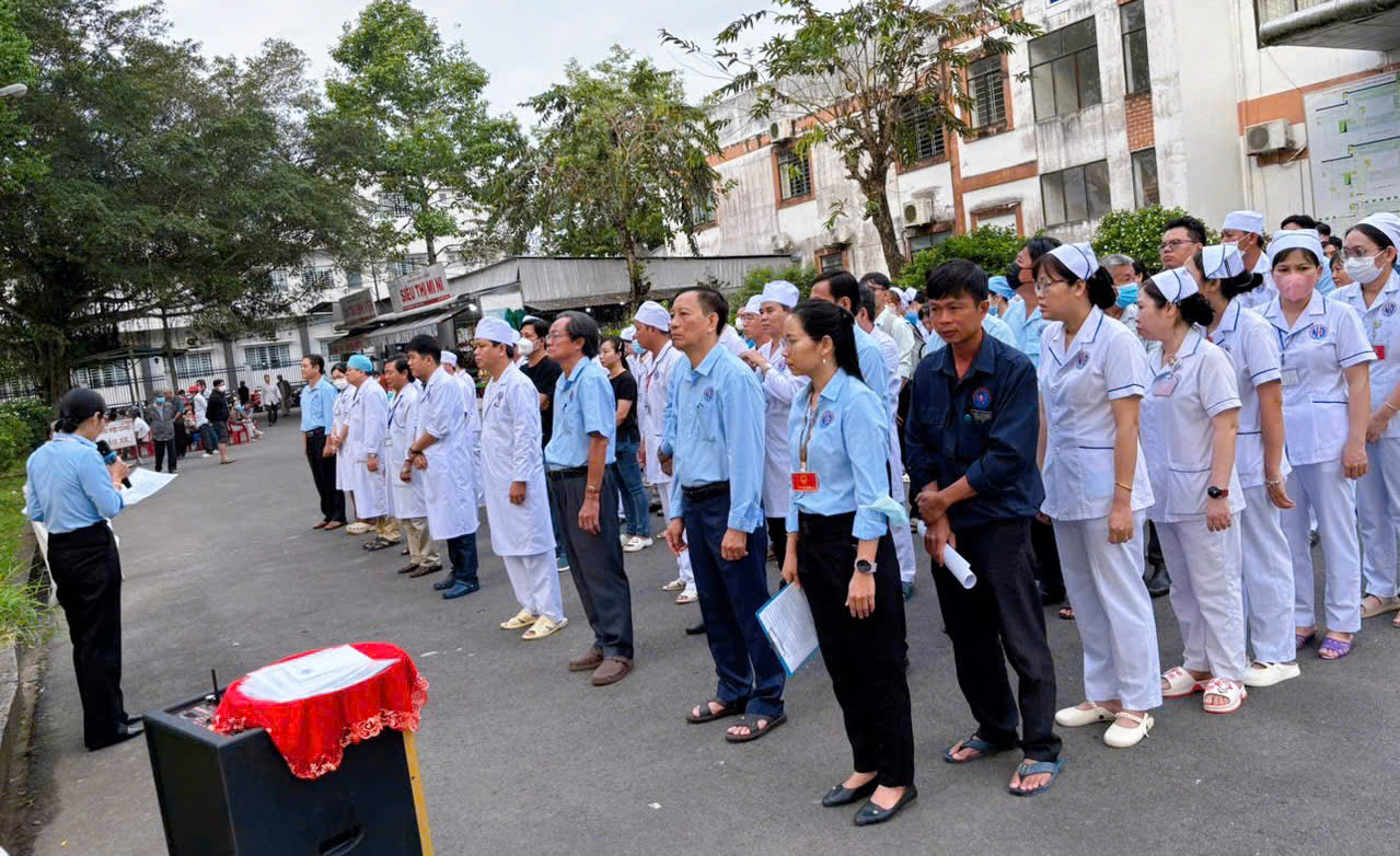 Nghi thức chào cờ diễn ra trong không khí trang nghiêm, tất cả viên chức hướng về lá cờ Tổ quốc và đồng thanh cất cao lời hát Quốc ca thiêng liêng, thể hiện niềm tự hào và tinh thần trách nhiệm trong công tác chăm sóc, bảo vệ sức khỏe nhân dân. Ngay sau khi kết thúc bài hát, đại diện viên chức y tế đọc 12 điều y đức và toàn thể cán bộ, viên chức tham dự cùng nhau hạ quyết tâm tuân thủ, áp dụng nghiêm túc trong hoạt động chuyên môn.
