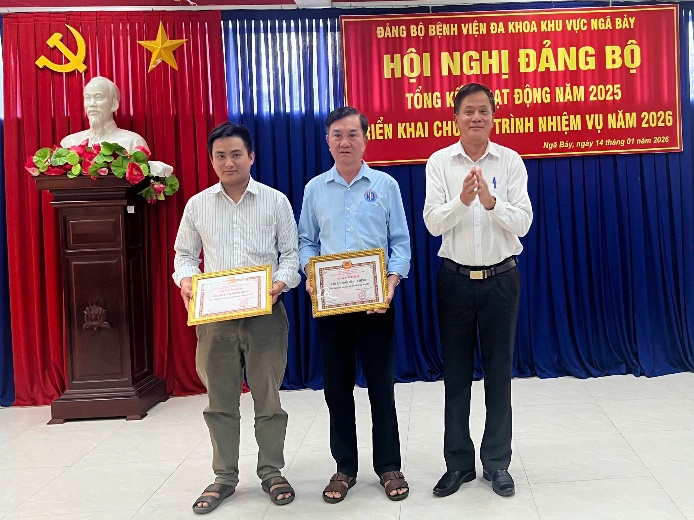 Tại Hội nghị, Đảng bộ Bệnh viện đã công bố và trao Giấy khen cho 02 chi bộ và 41 đảng viên hoàn thành xuất sắc nhiệm vụ năm 2025, ghi nhận sự nỗ lực, đóng góp tích cực trong thực hiện nhiệm vụ chính trị và chuyên môn.